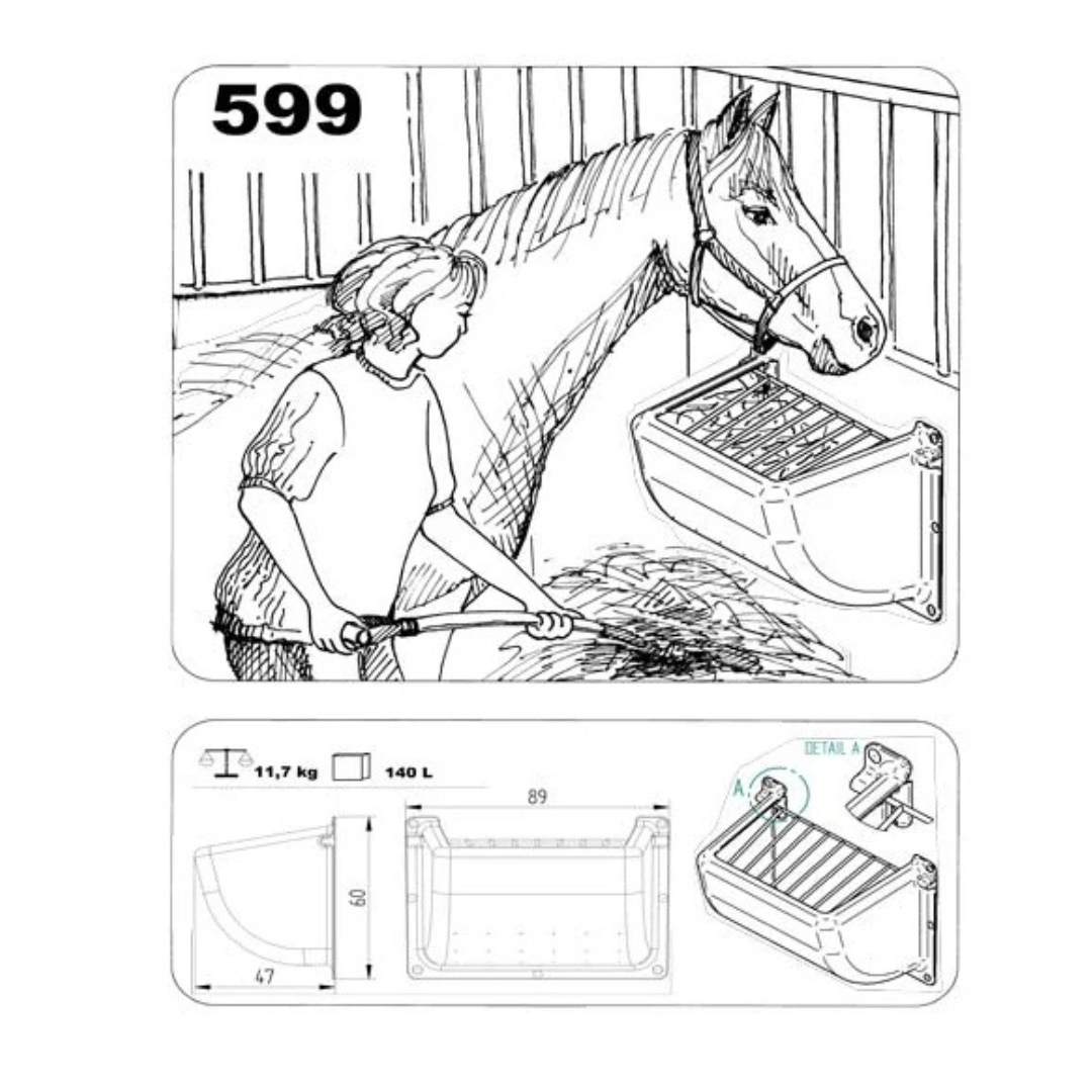 Ce râtelier à foin à alimentation lente, grâce à sa conception et à son emplacement, offre une position confortable pour manger. Le cheval peut manger dans sa position naturelle.