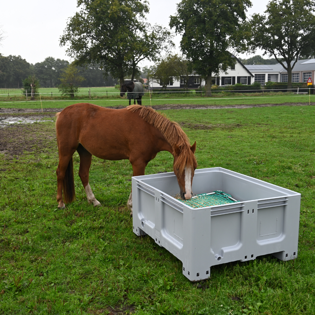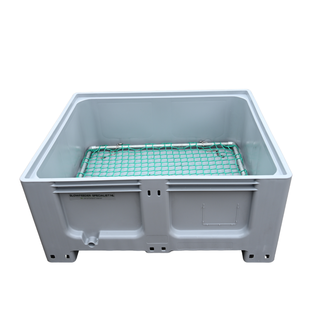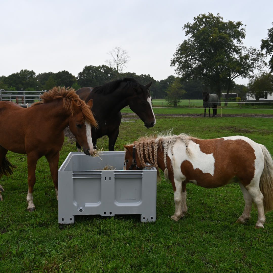 Le corps d'un cheval ou d'un poney est conçu pour manger 14 à 16 heures par jour. Le Slowfeeder XXL Édition Poney s'adapte parfaitement à ce rythme alimentaire naturel. Le foin est consommé en petites portions et réparti uniformément tout au long de la journée. Cela a un effet positif sur la digestion, la santé et le bien-être de votre poney ou petit cheval.