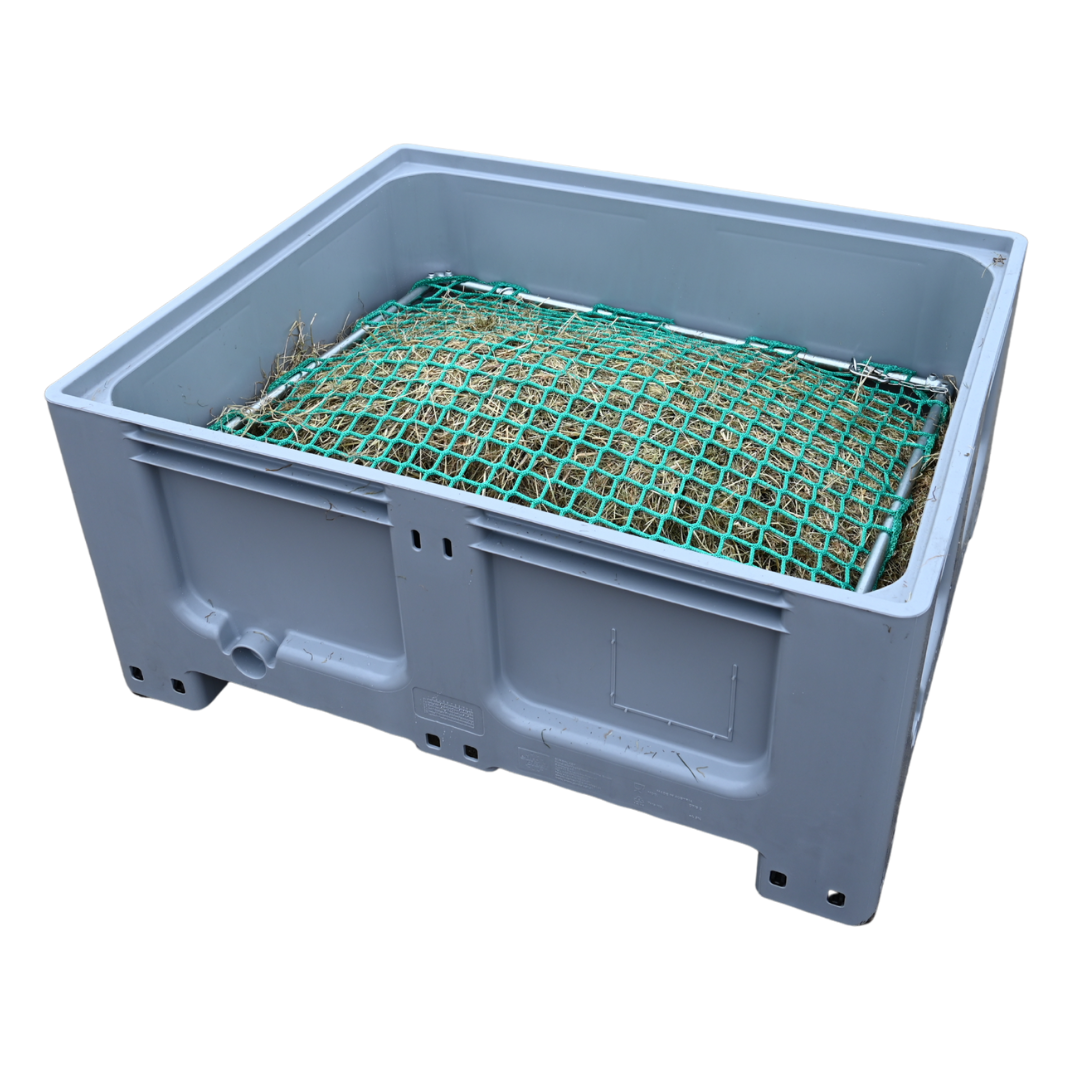 C'est pourquoi nous recommandons un filet sans nœuds avec une maille de 50 mm . Cela permet de ralentir la prise alimentaire et d'éviter toute frustration pour votre cheval ou poney. Cependant, il est important d'adapter la taille du filet à la taille de votre cheval ou poney pour garantir le bon fonctionnement et la sécurité de la mangeoire.