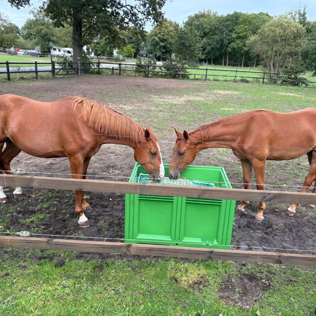 Om deze reden adviseren wij een knooploos net met een maaswijdte van 50 mm. Dit zorgt voor een goede balans tussen het vertragen van de voeropname en het voorkomen van frustratie bij je paard of pony. Het is echter belangrijk om de grootte van het net aan te passen aan de grootte van je paard of pony, om ervoor te zorgen dat de feeder goed werkt en veilig is voor je dier.