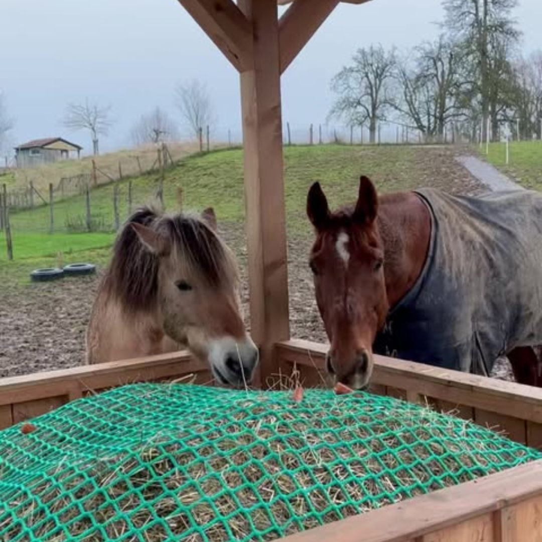 Om deze reden adviseren wij een knooploos net met een maaswijdte van 50 mm. Dit zorgt voor een goede balans tussen het vertragen van de voeropname en het voorkomen van frustratie bij je paard of pony. Het is echter belangrijk om de grootte van het net aan te passen aan de grootte van je paard of pony, om ervoor te zorgen dat de feeder goed werkt en veilig is voor je dier.